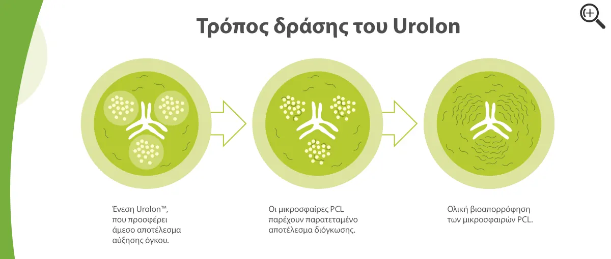 - Η έγχυση του Urolon® αρχικά δημιουργεί αυξημένη ιστική μάζα του μαλακού ιστού της ουρήθρας